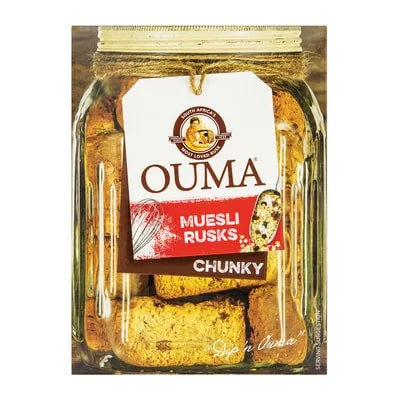 Start your day off right with Ouma Muesli Rusks! These chunky rusks are made with wholesome ingredients and packed with nutrients, making them the perfect breakfast or snack. Enjoy the delicious crunch and energy boost that comes from each bite. Grab a 500g pack today and experience the ultimate breakfast treat!